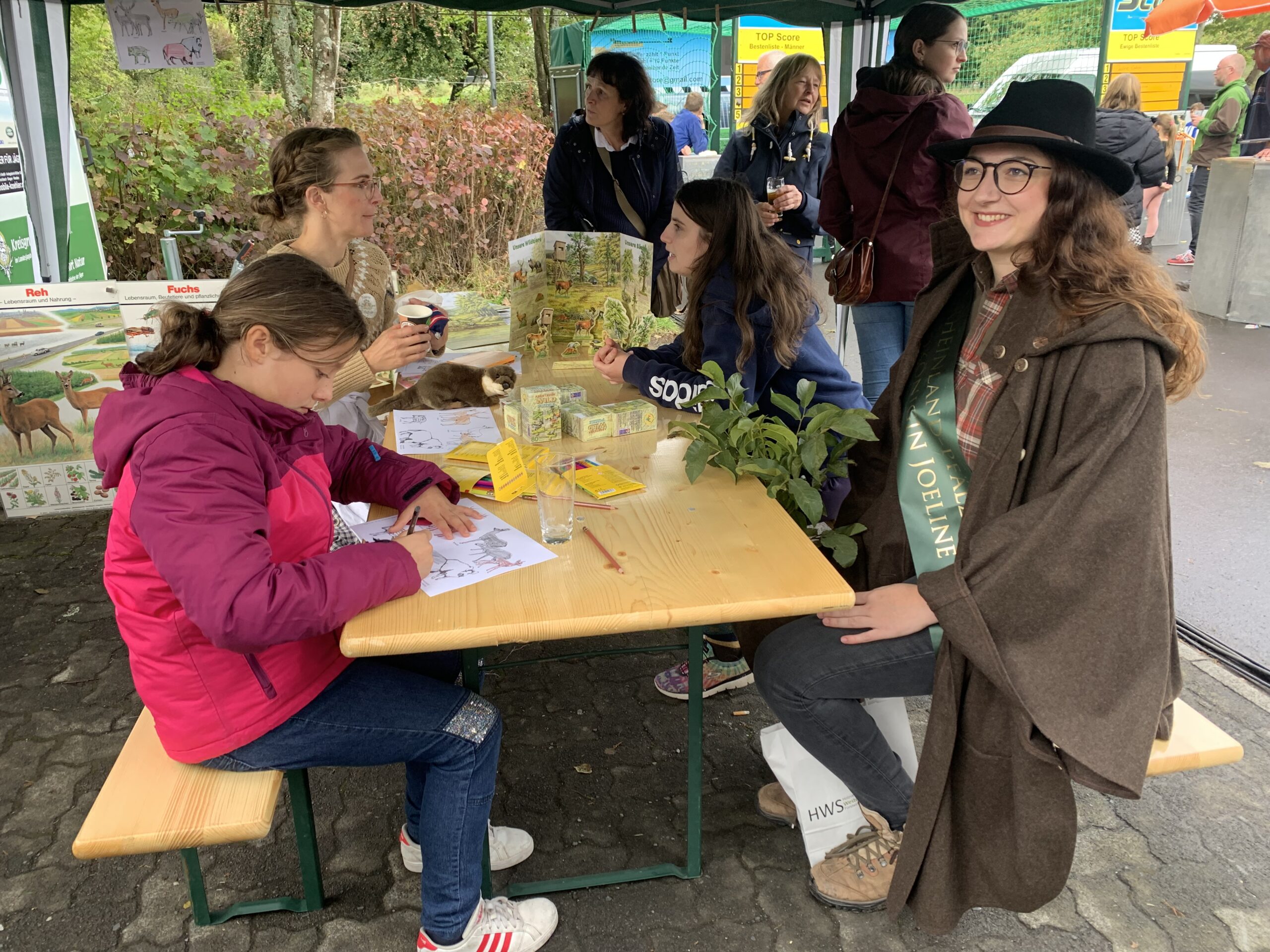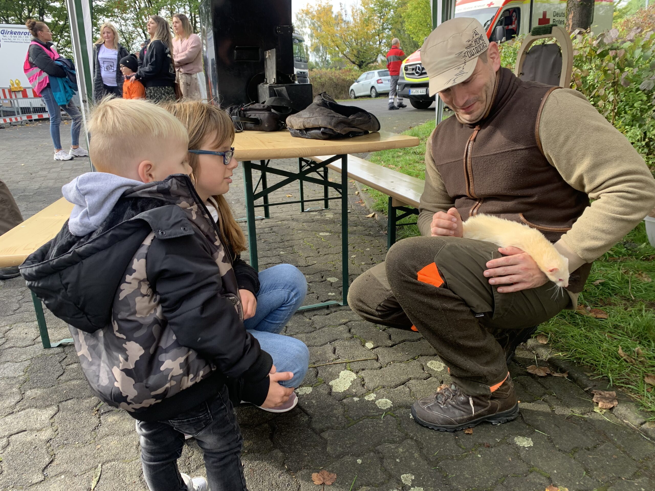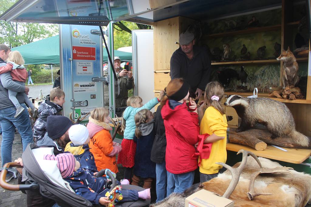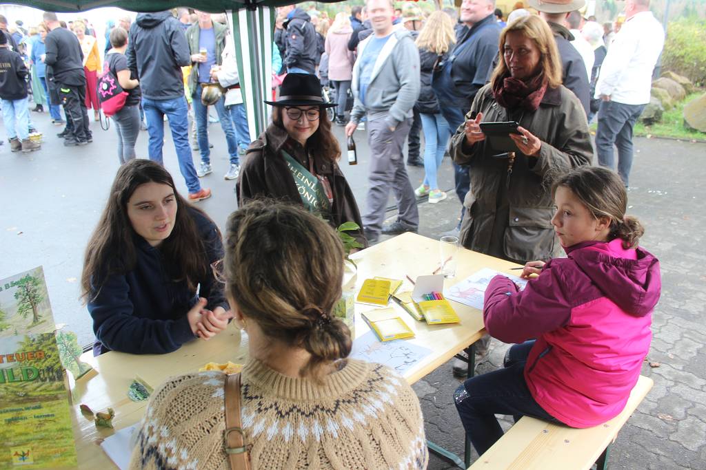 Zur 800-Jahr Feier in Nauroth war die „Erlebnisschule Wald und Wild“ als Initiative der Jäger der Kreisgruppe Altenkirchen auf dem Festplatz im Dorf auf Einladung der Waldinteressenten Nauroth stationiert. Die zertifizierten Wald- und Naturpädagogen der Schule empfingen die interessierten Kinder und Erwachsenen mit vielen Möglichkeit der Natur in Wald und Feld näher zu kommen. Es gab allerlei zum Malen und Basteln, aber auch zum Anfassen und Anschauen. Unterstützung kam von der Bläsergruppe des Hegerings Gebhardshain mit einigen jagdmusikalischen Stücken und der amtierenden rheinland-pfälzischen Jagdkönigin. Habicht und Wüstenbussard wurden von den Falknern präsentiert, das Frettchen ließ sich geduldig streicheln und war bei den Kindern sehr beliebt. Informationen in gedruckter Form, sowie Kastanien- und Walnußsetzlinge von den Waldinteressenten Nauroth gab es obendrauf.