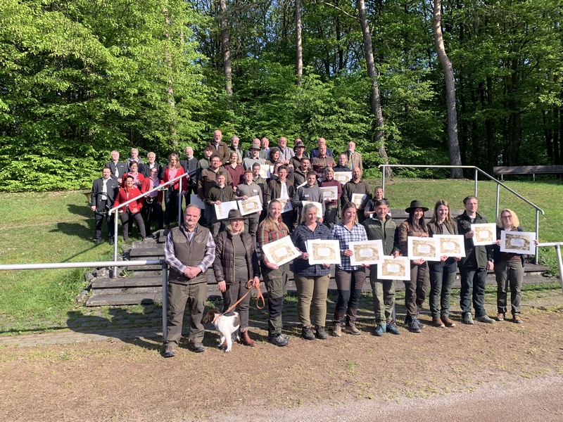 Und das sind die neuen Inhaber der Jagdscheine: Christoph Böhmer (Katzwinkel), Armin Denecke (Hasselbach), Jonas Fieberg (Etzbach), Gabriel Fröhlich (Nauroth), Yvonne Grollius (Ingelbach), Moritz Hähner (Birken-Honigsessen), Bettina Hanka (Wiehl), Andreas Kaminski (Kirchen, zugleich Prüfungsbester), Jessica Kampe (Gebhardshain), Luca Kleusberg (Morsbach), Sylvia Koch (Niederfischbach), Michael Korth (Scheuerfeld), Andrea Latsch (Scheuerfeld), Michael Liedigk (Peterslahr), Sandra Molenda (Giesenhausen), Christian Müller (Betzdorf), Melissa Müller (Kirchen), Uwe Müller (Betzdorf), Florian Philipp (Nauroth), Günter Placke (Nauroth), Anja Sauer (Friesenhagen), Joel Benjamin Schenk (Morsbach), Elena Stausberg (Waldbröl), Juliane Templin (Seelbach), Angelina Thiel (Helmeroth), Niklas Weller (Kirchen), Wiktor Wojcik (Katzwinkel).